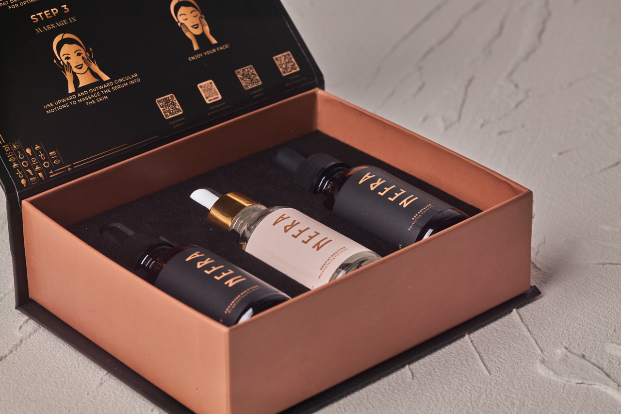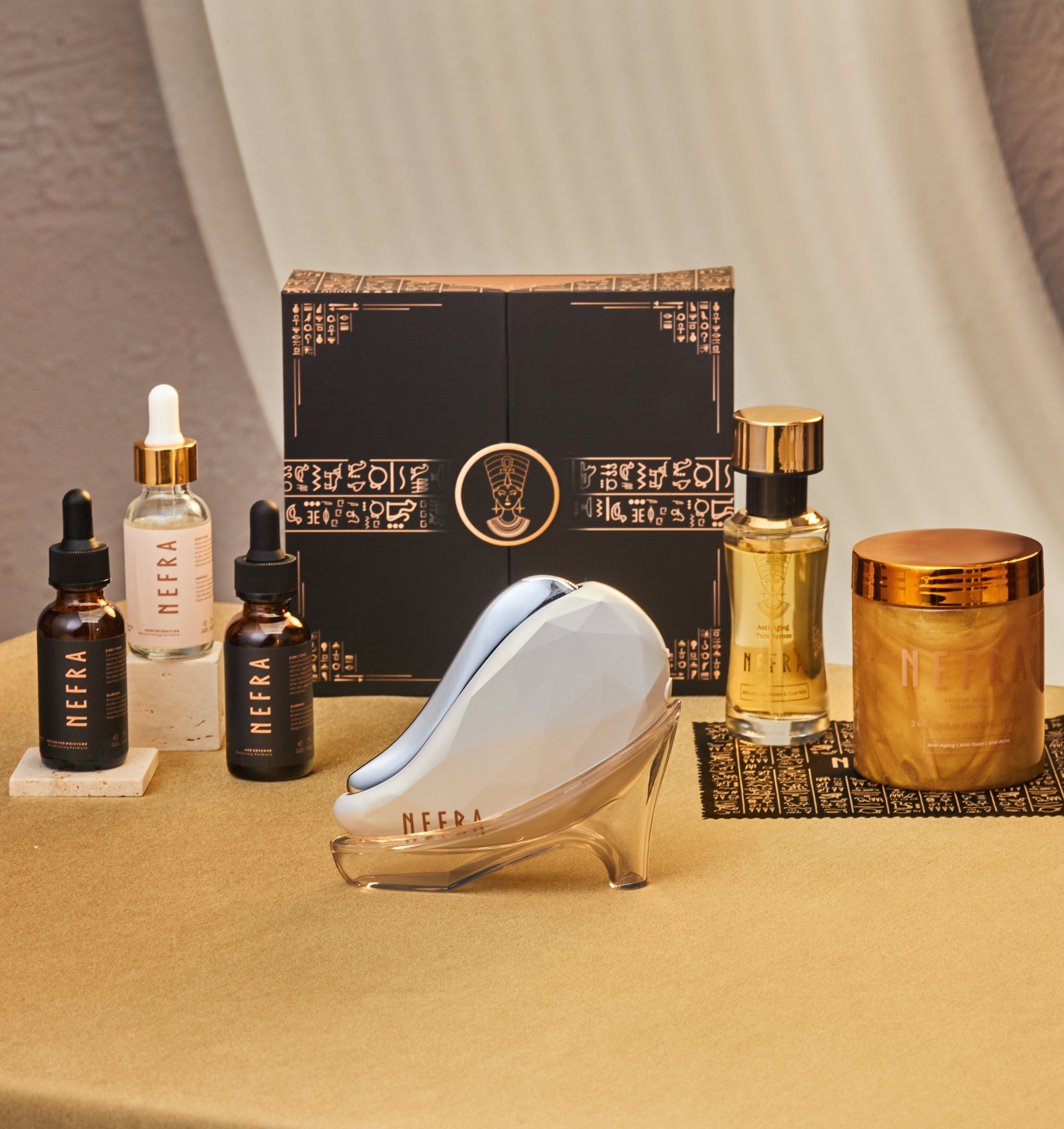Nefra combines ancient Egyptian queen rituals with advanced skincare tech for visible results.